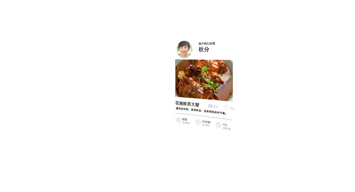 智能膳食顧問,根據各時令節氣,推送相應時鮮,讓您和家人不錯過當季美味。